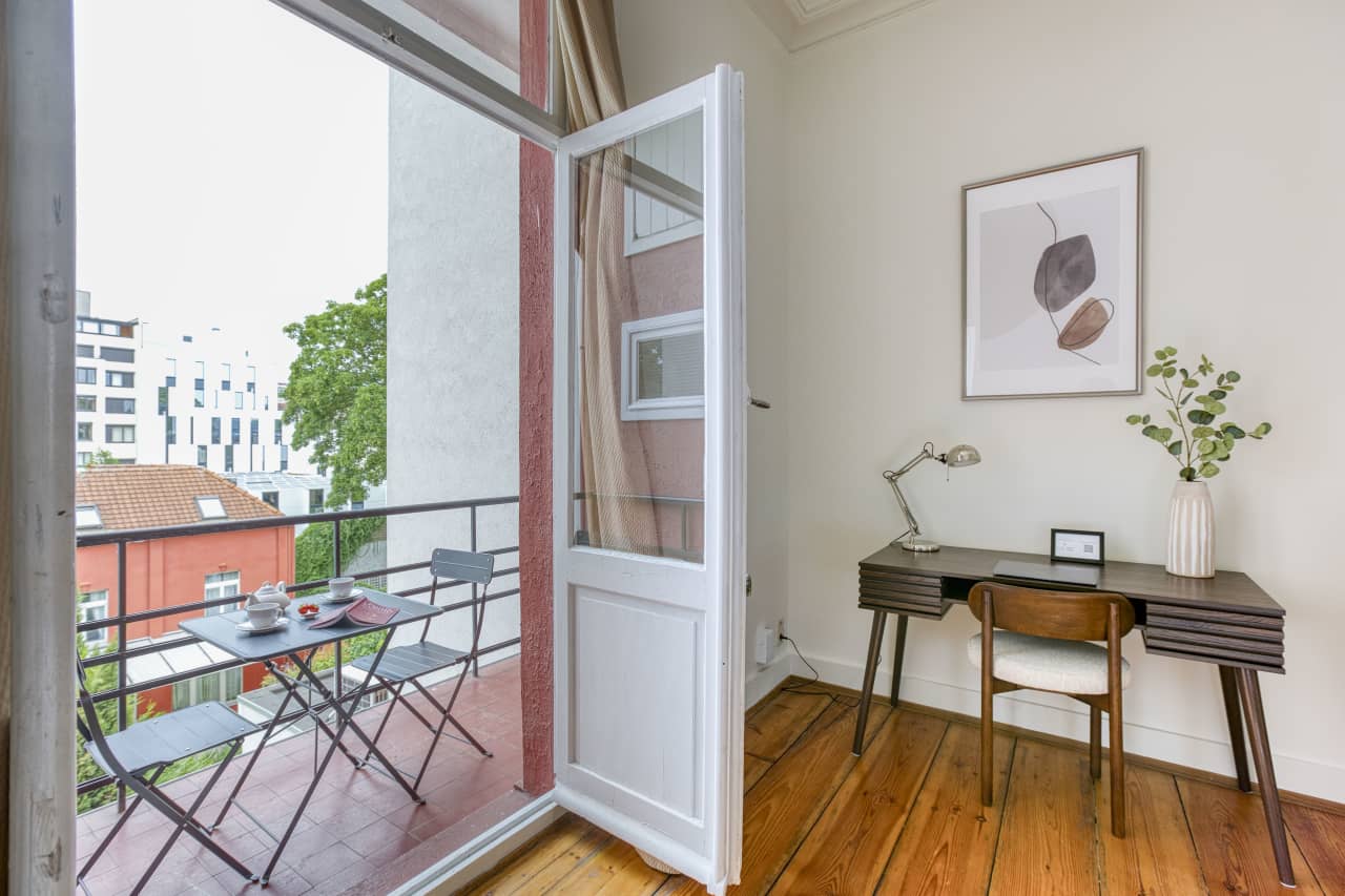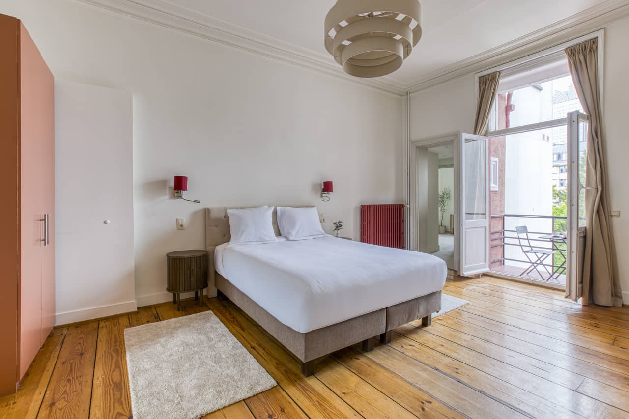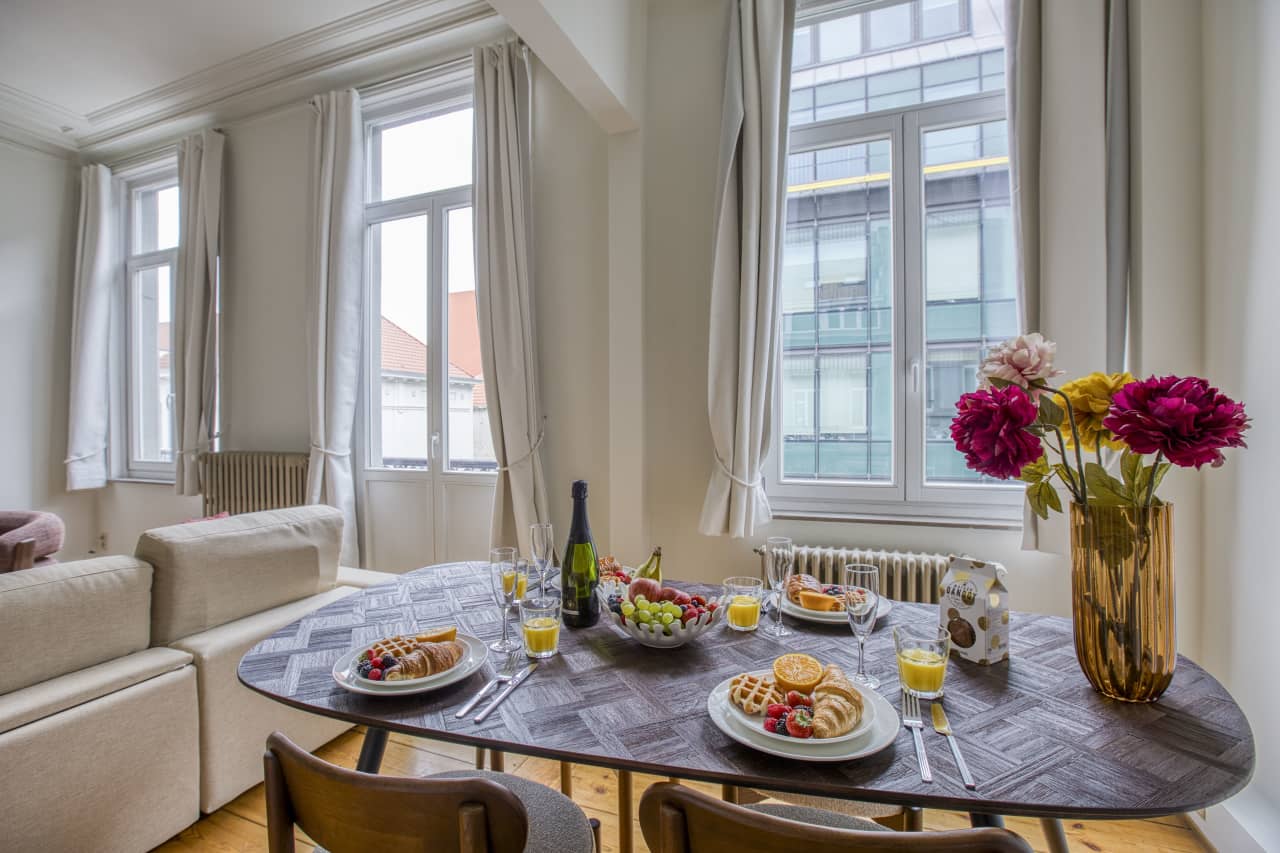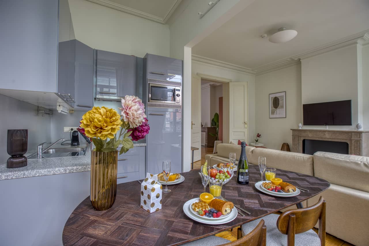 This Superior Apartment with Balcony invites you to experience Brussels in the utmost comfort. The elegant European-style ceiling moulding adds an extra touch of sophistication. The apartment includes a cosy bed, a comfortable seating area, and a lovely balcony perfect for enjoying your morning coffee, making it a wonderful choice for a memorable stay in the city.