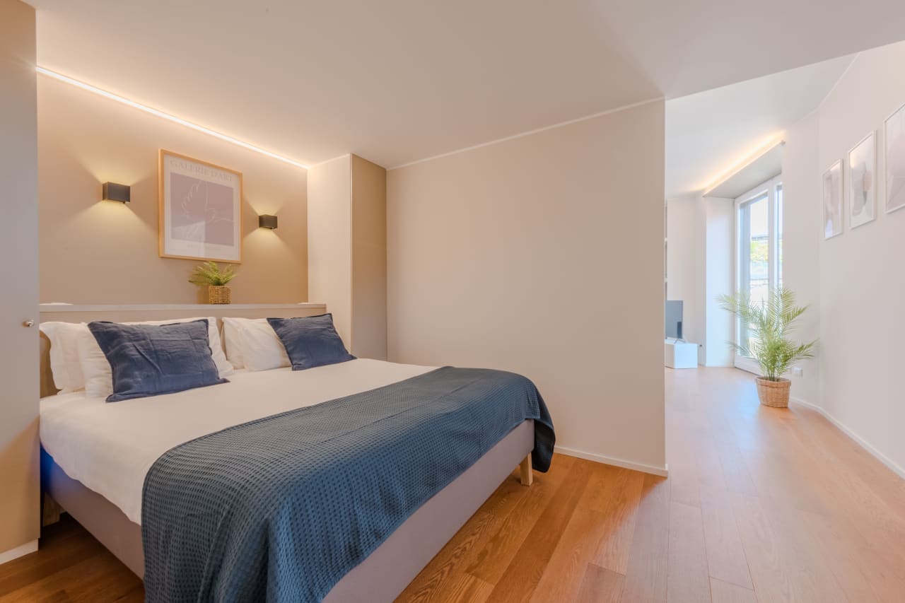 Step into the elegant ambience of Luxury Velasca VIII, an inviting one-bedroom apartment in Milan designed for those who appreciate both comfort and style. Thoughtfully arranged by our expert designer, the apartment harmonises contemporary features with classic Italian touches. Begin your day savouring a fresh pastry and aromatic coffee in the privacy of your kitchenette, or immerse yourself in the lively café scene just steps from your door.